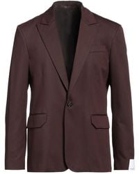Go to YOOXJersey, no appliqués, solid colour, lapel collar, single-breasted , long sleeves, buttoned cuffs, unlined, button closing, multipockets, stretch, rear slit, single-breasted jacket. 56% Viscose, 36% Polyamide, 8% Elastane. Colour: brown