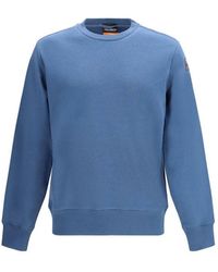Go to YOOXPARAJUMPERS. french terry, plain colour, brand logo, patches, crewneck, long sleeves, machine wash, do not bleach, do not tumble dry. 85% Cotton, 15% Polyester. Colour: blue