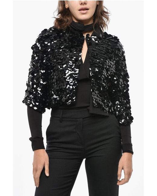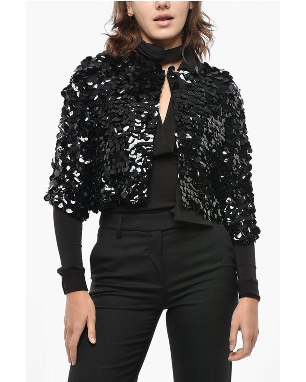 Women's Black Sequin Cardigan With 3/4 Sleeves