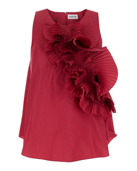Women's Red Bordeaux Blouse With Ruffles On The Front