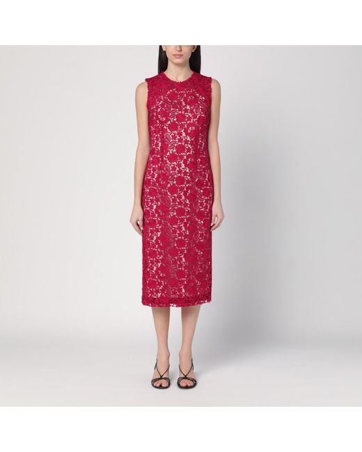 Women's Red Lace Midi Dress