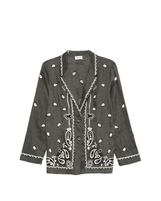 Women's Grey Paisley-embroidery Shirt