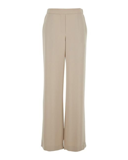 Women's Natural Trousers With Elastic Waist And Wide Leg
