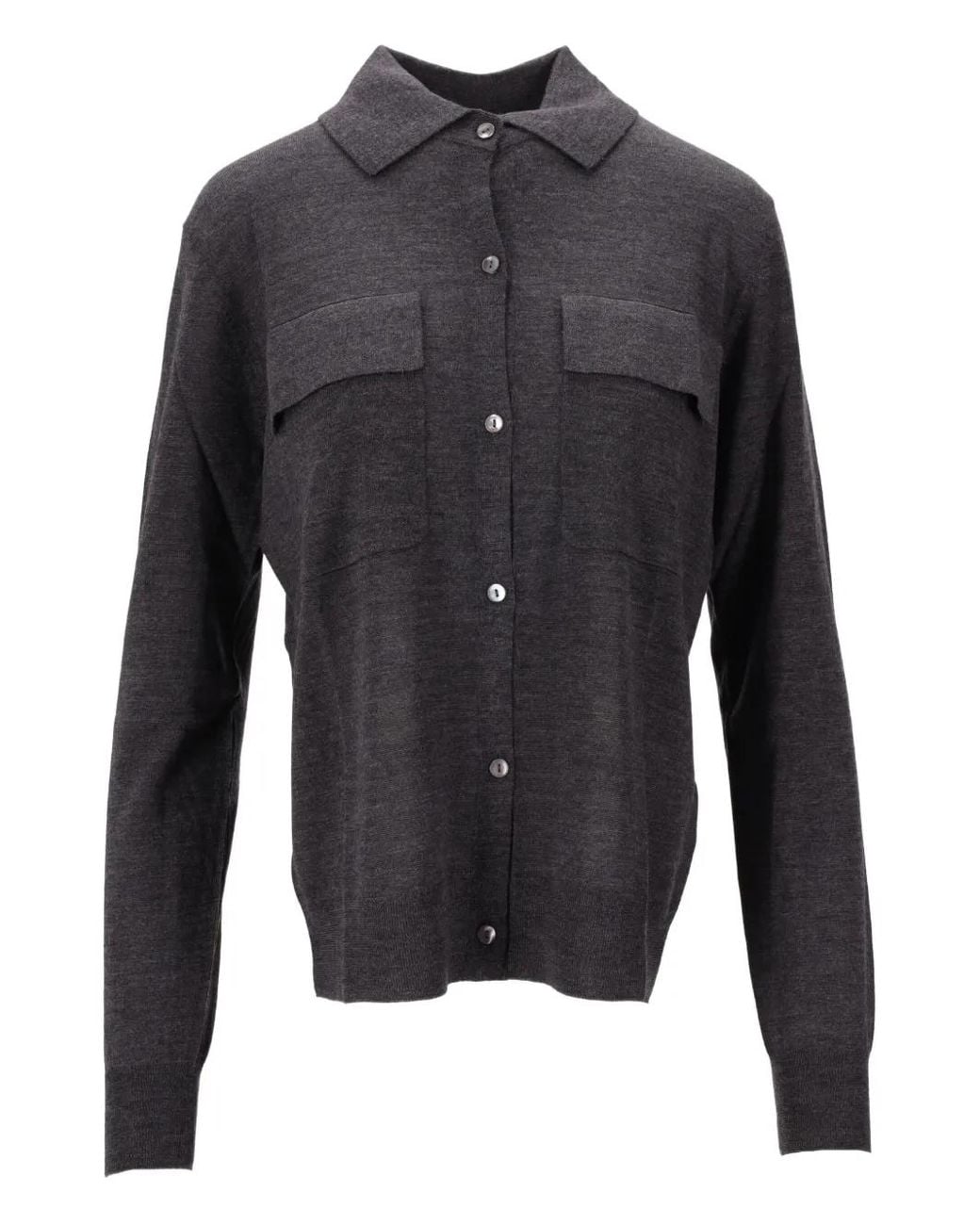 Dark grey collared button fastening long sleeves chest pockets Size: XS. Gender: Female. Material:Wool/Silk/Cashmere.