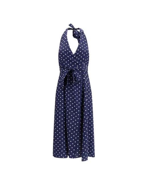 Women's Blue Polka Dot Halterneck Midi Dress