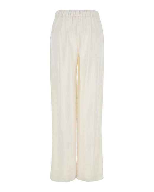 Women's White Relaxed Fit Wide Leg Trousers With Elasticated Waistband