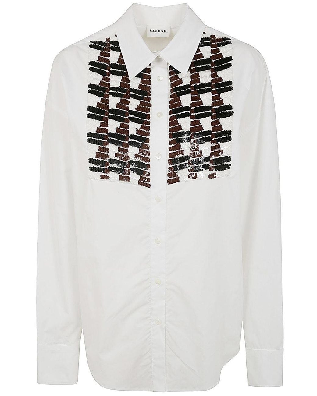 Palm Tree-Print Sequin-Embellished Shirt - White