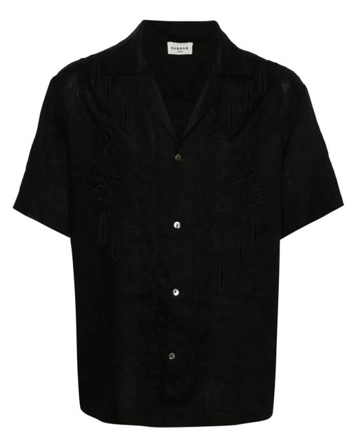 - Floral-Embroidery Linen Shirt