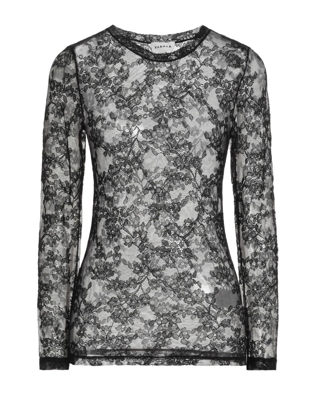 P.A.R.O.S.H.. top, lace, no appliqués, plain colour, crewneck, long sleeves, without pockets, stretch, dry clean, do not bleach, do not tumble dry. 74% Polyamide, 17% Cotton, 9% Elastane.