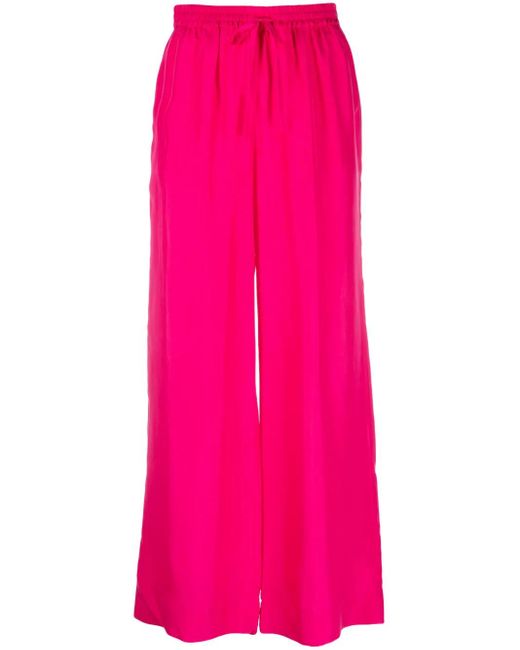 Women's Pink Wide Leg Silk Drawstring Trousers