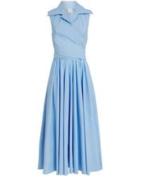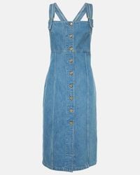 Patou Women's White Cotton Denim Square Neck Sleeveless Midi Dress
