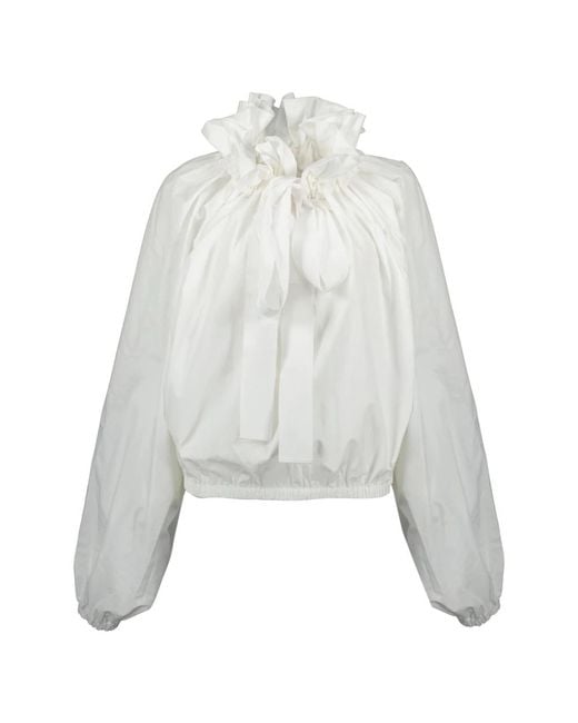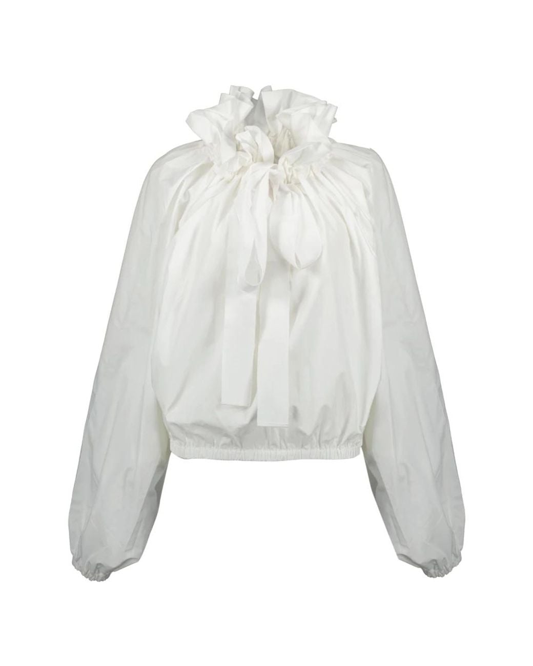 The Iconic blouse from Patou is a feminine piece made of cotton, adorned with a lavallière collar and puff sleeves. It is part of the Autumn-Winter 2025 collection. Colour: grey
