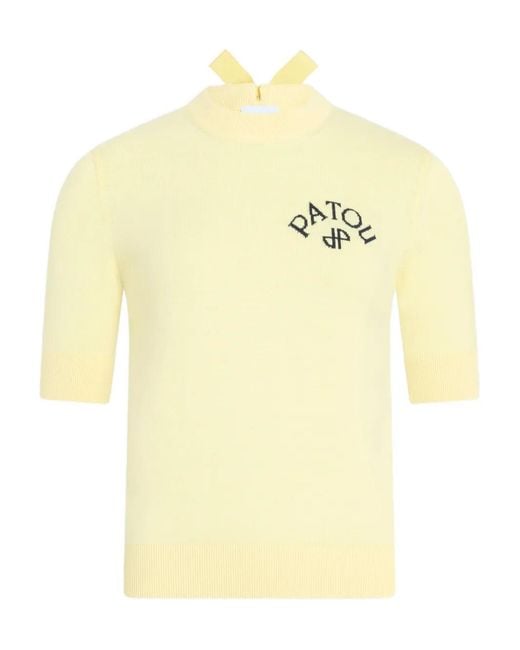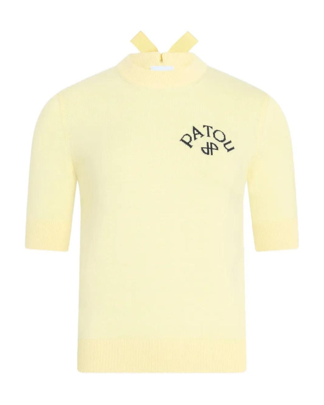 Light yellow logo lettering short sleeves bow detail crew neck ribbed trims Size: S. Gender: Female. Material:Cotton/Polyamide. Colour: yellow