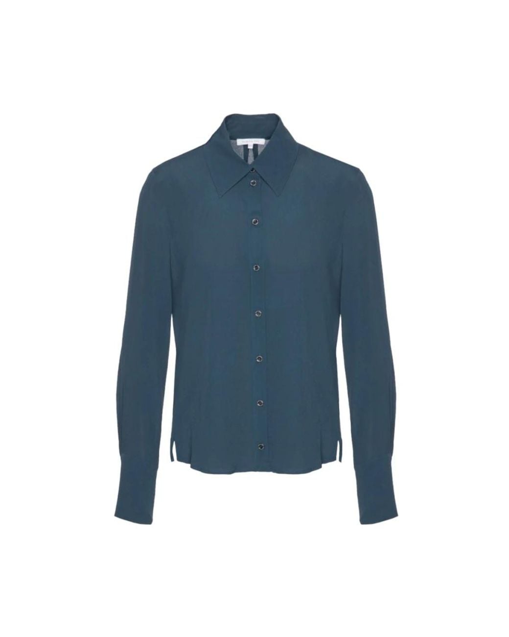 The Patrizia Pepe Blouse is a relaxed-fit crêpe de chine shirt that balances polished detailing with everyday wearability. Its wide collar and buttoned placket make it suitable for smart-casual outfits and layered looks. Key attributes: Blue | Petrol blue | Crêpe de Chine | Button-front placket | Adjustable double-button cuffs | Long sleeve slits with four buttons | Small side slits for ease of movement | Wide blouse collar | Topstitched button placket | Pinched pleat at centre back | Small side slits | High cuffs | Buttons with label script | Dimensions & fit: Relaxed fit | Composition & care: Crêpe de Chine Colour: blue