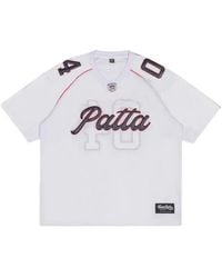 Go to END.Embodying a retro streetwear vibe, the Patta pinned t-shirt effortlessly elevates your casual look. Featuring a bold Patta logo front and centre, with a striking safety pin graphic woven into the design, this