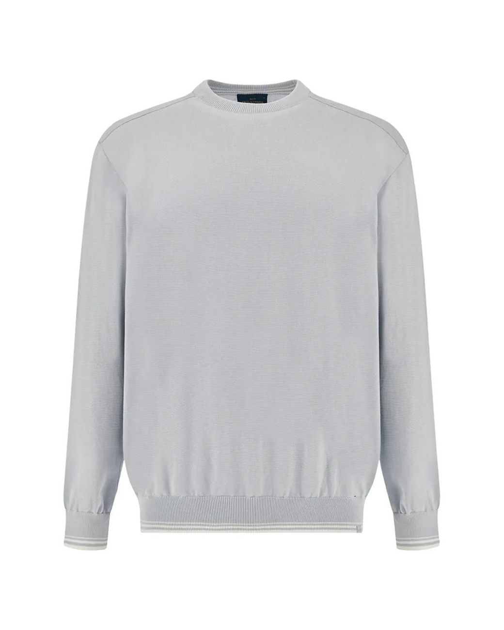 Skyride crew neck cotton ribbed knit striped detail panelled shoulder Size: S. Gender: Male. Material:Cotton. Colour: grey