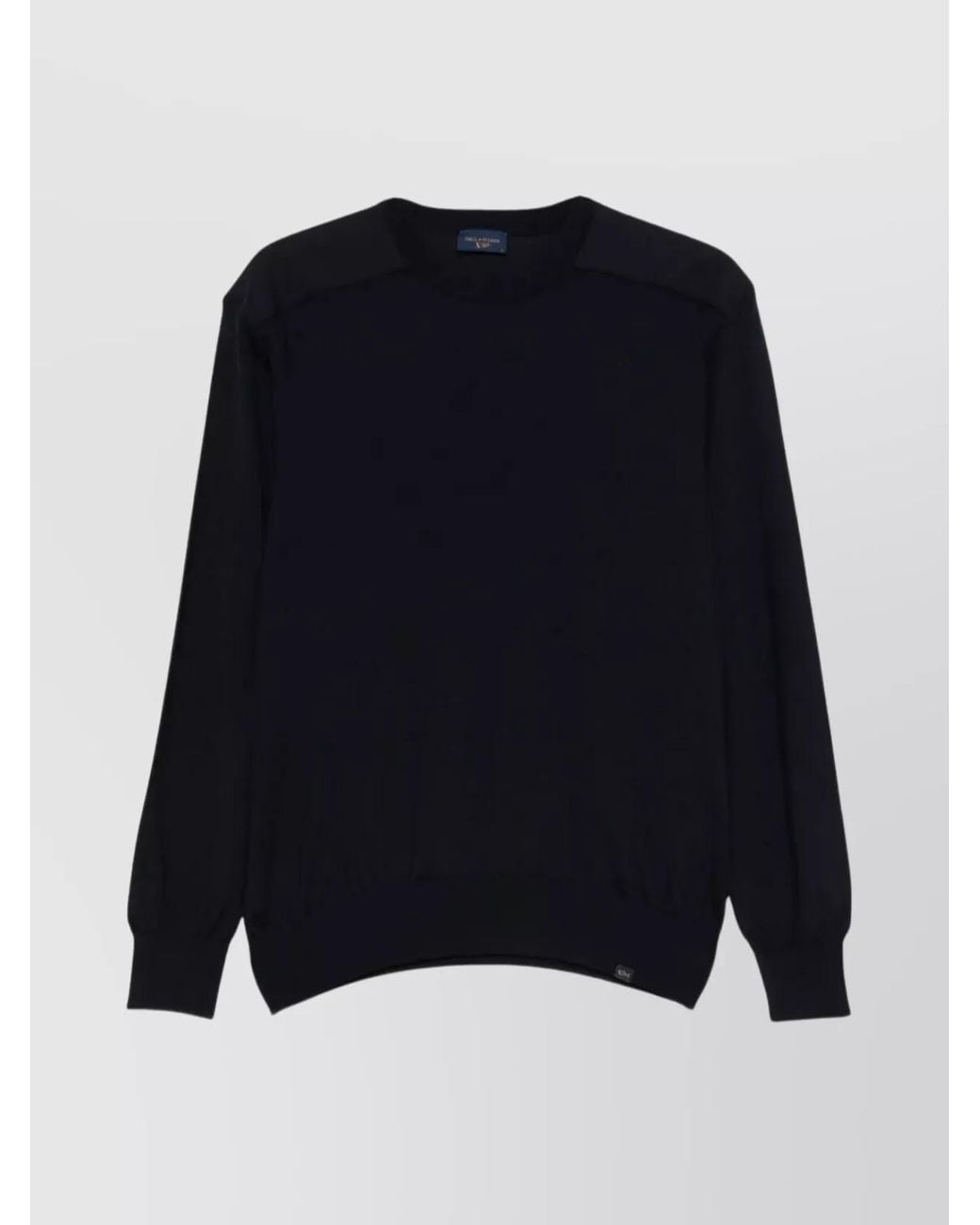 Crew Neck Wool Jumper With Compass Logo Patch - Black