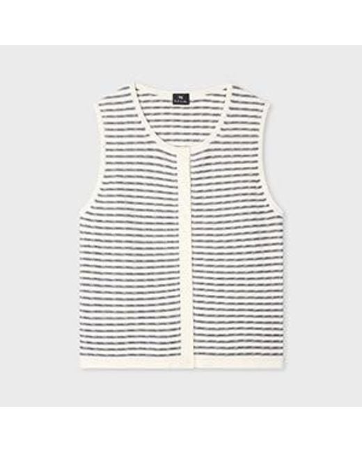Women's White Knitted Stripe Waistcoat