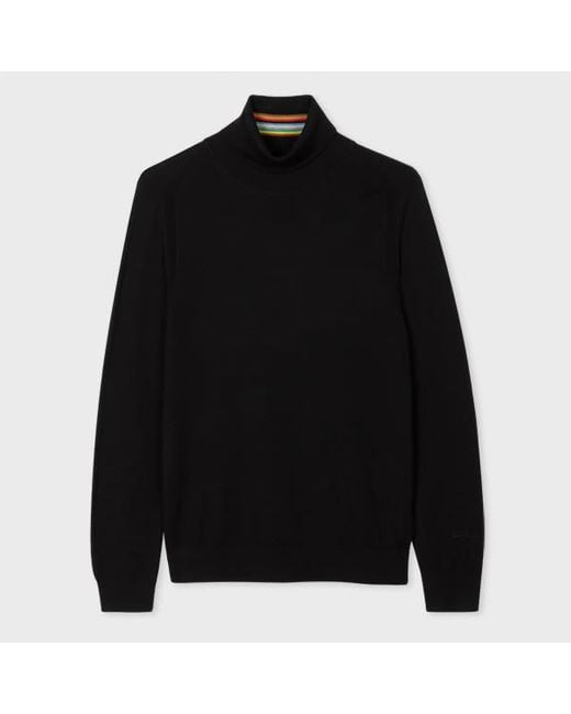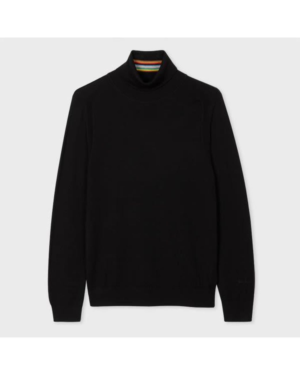 Crafted from a luxuriously soft Merino wool, this black sweater features a roll neck with a 'Signature Stripe' detail throughout the internal neckline.