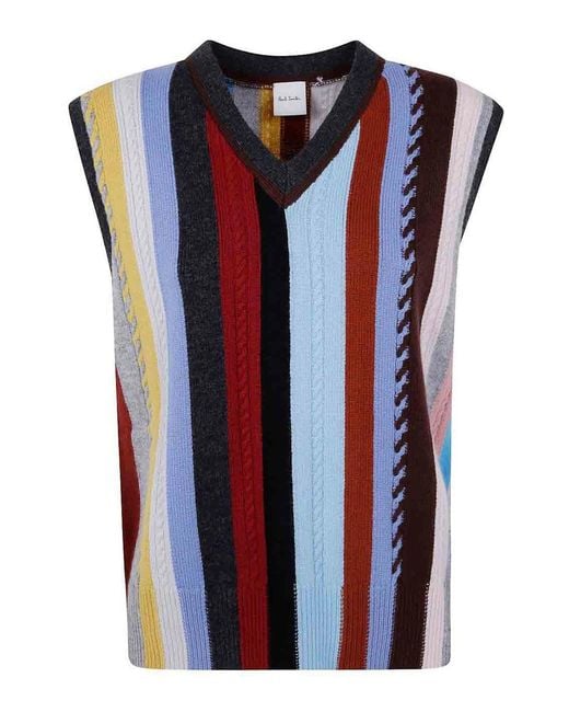 Printed top multicolour vertical stripes cable knit v-neck sleeveless Colour: blue