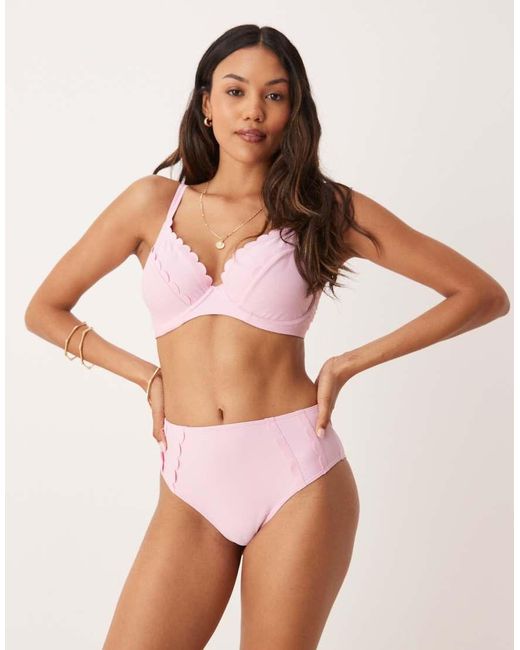 Women's Brown High Waist Bikini Bottom With Double Scallop Detail