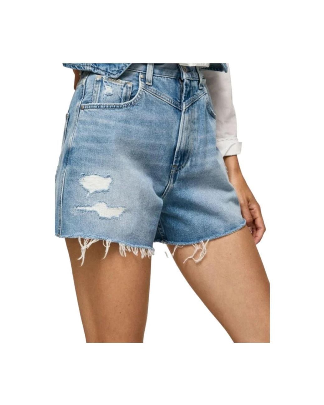 Looking for a casual and youthful denim short for the summer? Look no further than the Rachel Pepe Jeans shorts. Made from 100% cotton, these shorts are both comfortable and durable. Featuring a regular fit, high waist, and wide leg, they also have front seam details and frayed edges for added style. Colour: blue