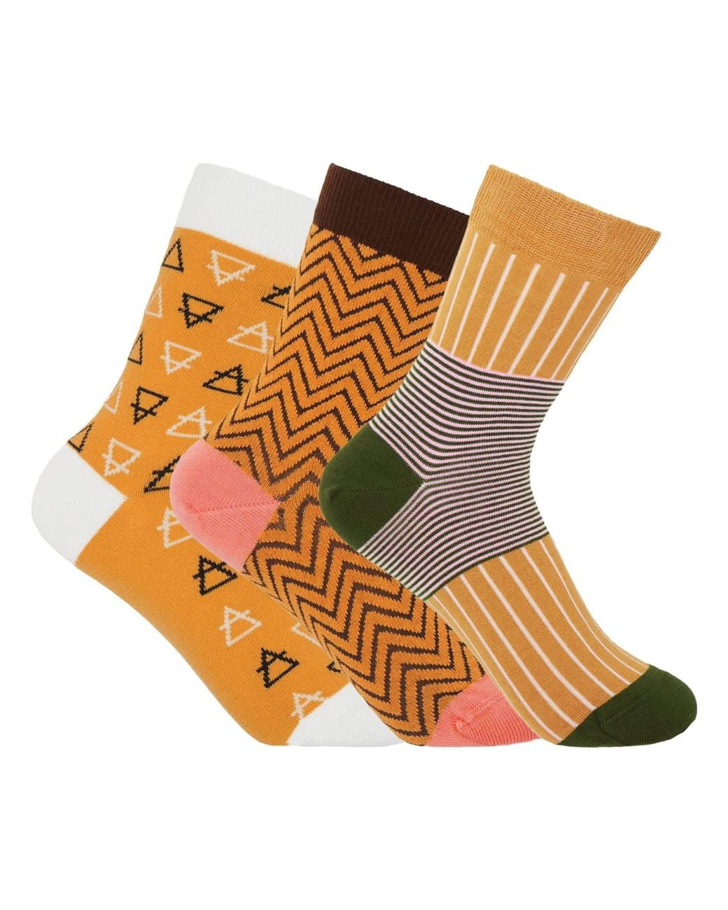 Add a pop of colour to your sock collection with the Women’s Socks Bundle - Mustard. This luxurious set includes Elements, Zigzag, and Oxford Stripe designs, all crafted in England from the finest cotton. The striking mustard hues, paired with elegant patterns, make these socks a stylish essential for any wardrobe. Designed for comfort and durability, they provide a soft, breathable fit that’s perfect for everyday wear. Elevate your sock game with this chic and timeless collection. MATERIAL Zigzag: 74% Supima Cotton, 24% Polyamide, 2% Spandex. Oxford Stripe: 70% Mercerised Egyptian cotton, 30% Polyamide. Elements: 36% Recycled Cotton, 36% Recycled Polyester, 26% Polyamide, 2% Spandex. CARE: Wash inside out, with similar colours and at 30 degrees. Colour: orange