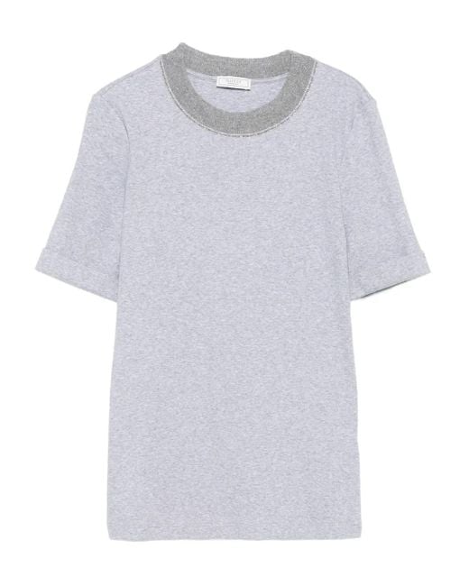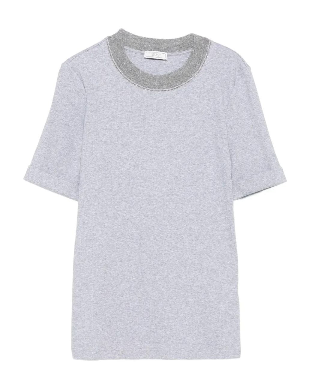 Grey short sleeves rolled cuffs crew neck embellished neckline cotton Size: 38. Gender: Female. Material:Elastane/Cotton/Wool/Cashmere/Polyester. Colour: white
