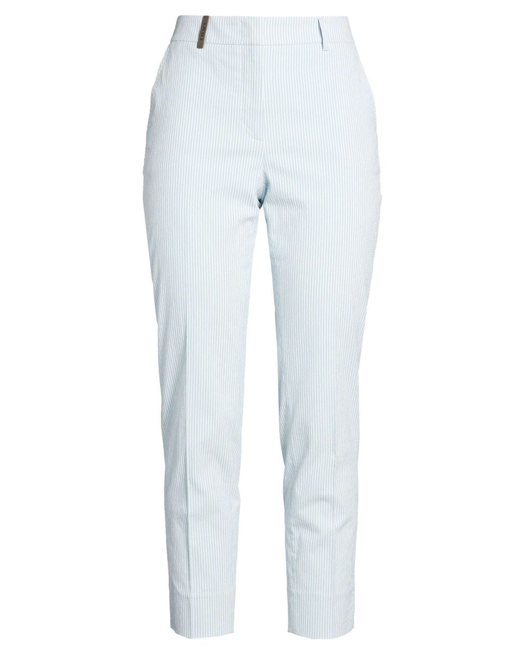 PESERICO. tapered trousers, woven, striped, embellished, mid rise, regular fit, zip fastening, hook fastenings, slit pocket, machine wash or dry clean, do not bleach, do not tumble dry. 99% Cotton, 1% Elastane.