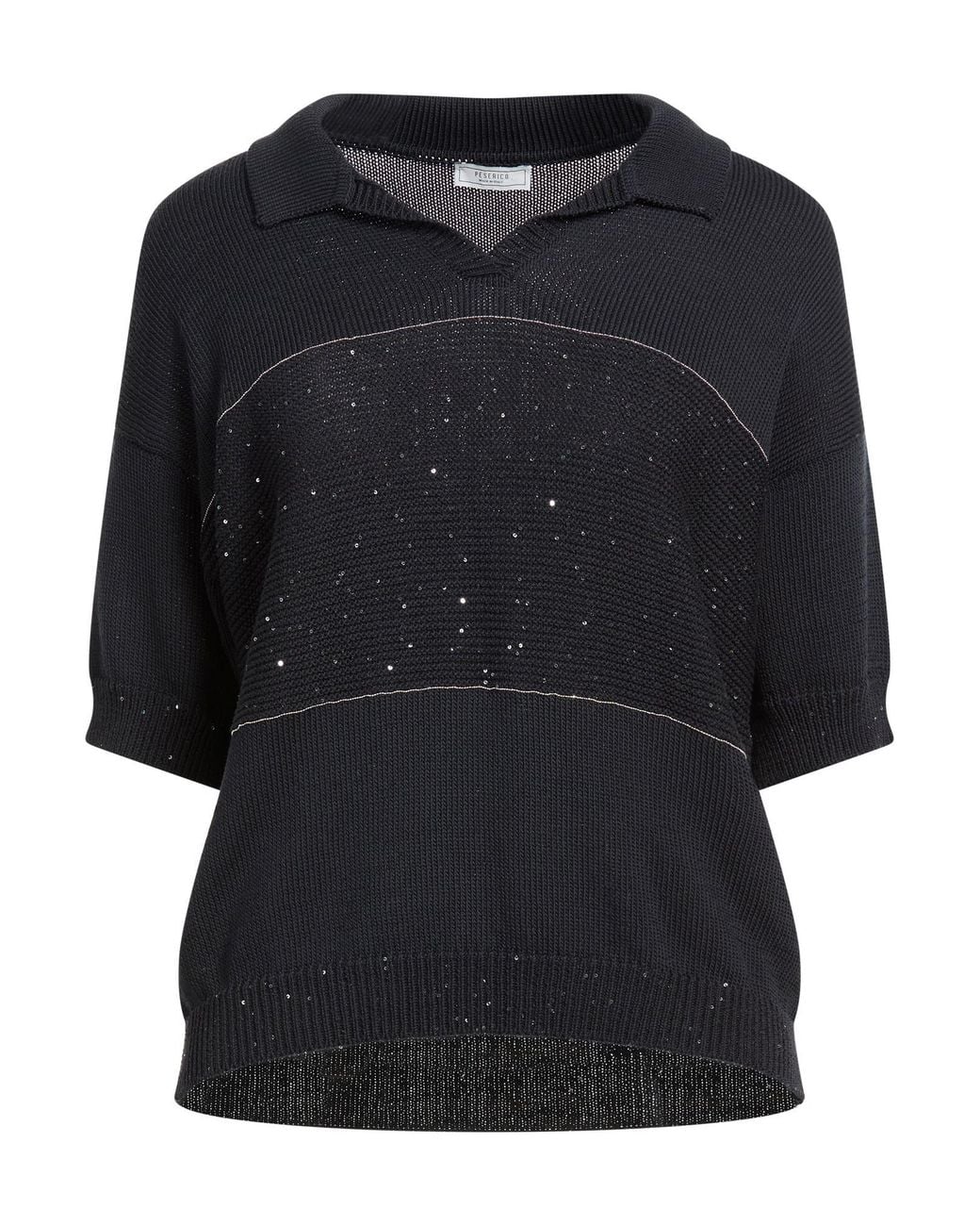 PESERICO. knitted, lightweight knit, sequins, plain colour with appliqués, camp collar, short sleeves, machine wash or dry clean, do not bleach, do not tumble dry, this brand runs small. 99% Cotton, 1% Polyester.