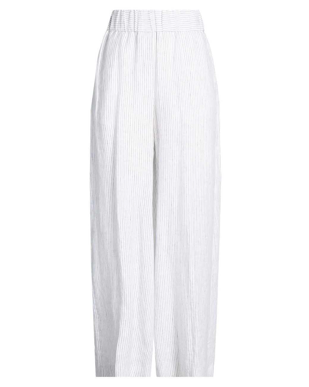 PESERICO. wide-leg trousers, woven, pinstriped, no appliqués, high waisted, elasticised waist, relaxed fit, slit pockets, machine wash or dry clean, do not bleach, do not tumble dry. 100% Linen.