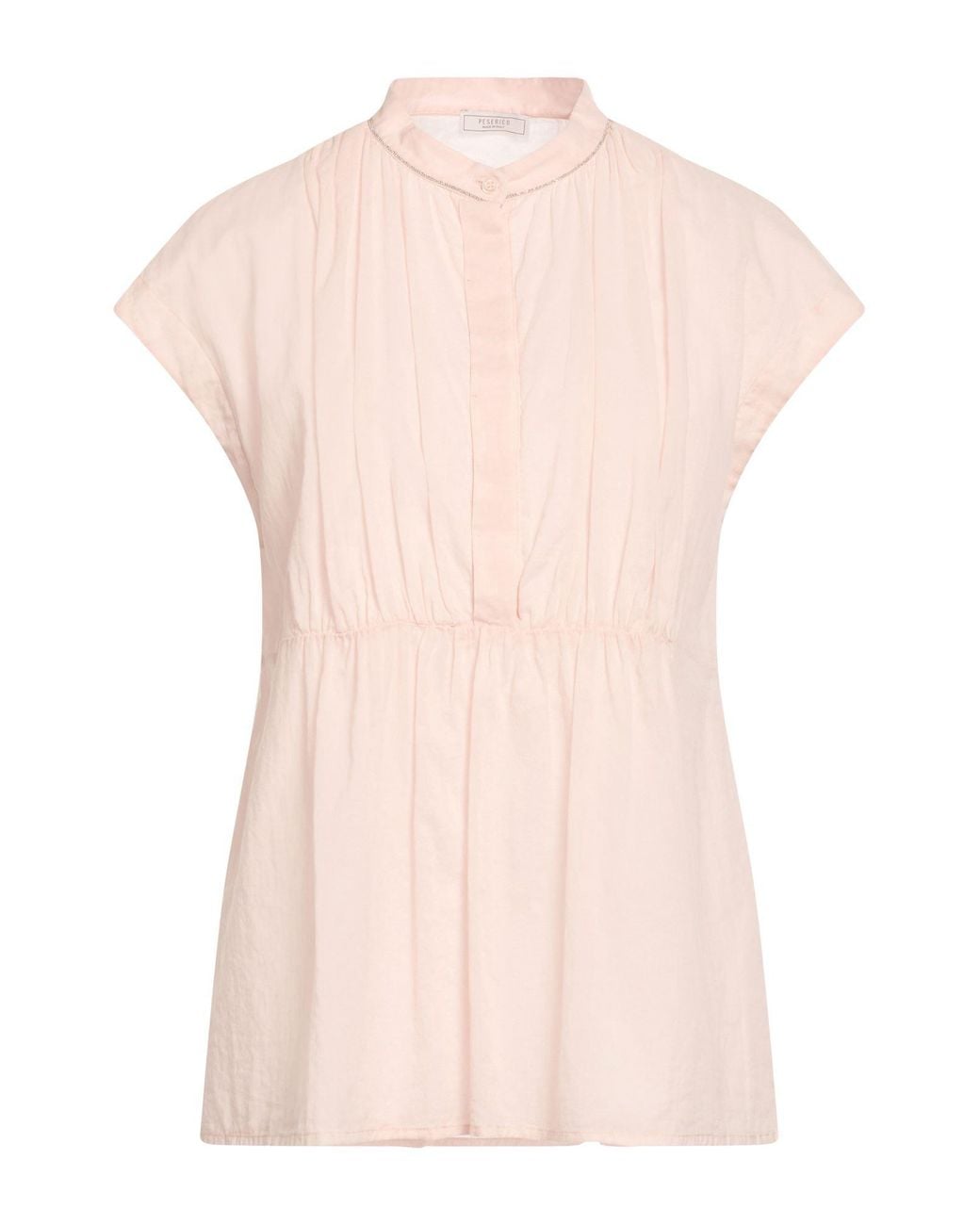 PESERICO. top, woven, plain colour with appliqués, darts, embellished, mandarin collar, short sleeves, button fastenings, machine wash or dry clean, do not bleach, do not tumble dry. 100% Cotton.