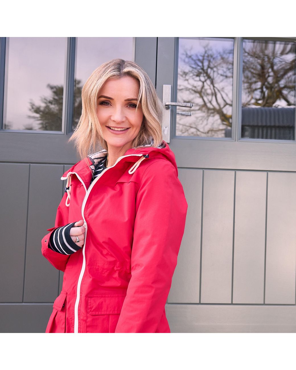 Women's Pink Waterproof Weekend Jacket With Grown On Adjustable Hood, Raincoat