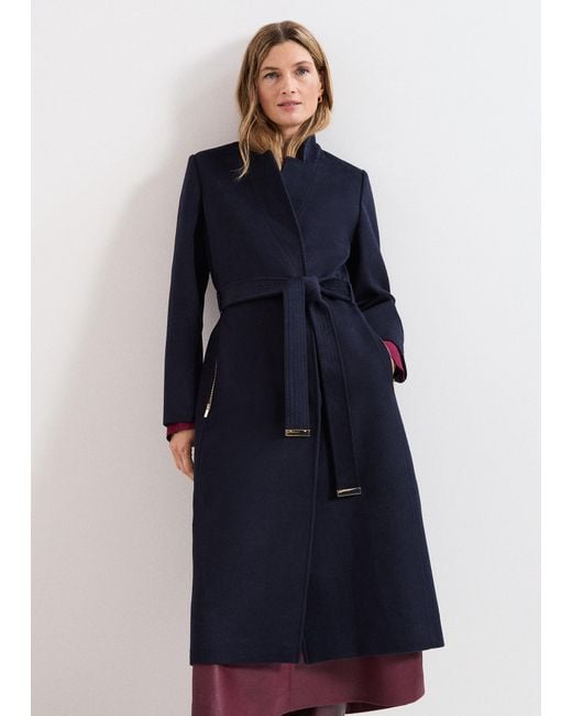 Camel Longline Faux Wool Trench Coat With Fur Collar - Grey
