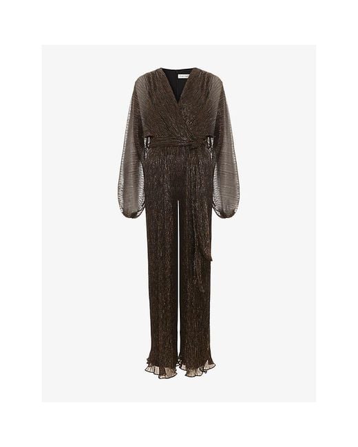 Women's Metallic Rachel Wrap-Front Woven Jumpsuit
