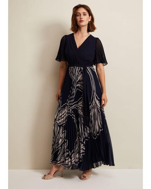 Women's Blue Abigail Printed Pleat Midaxi Dress