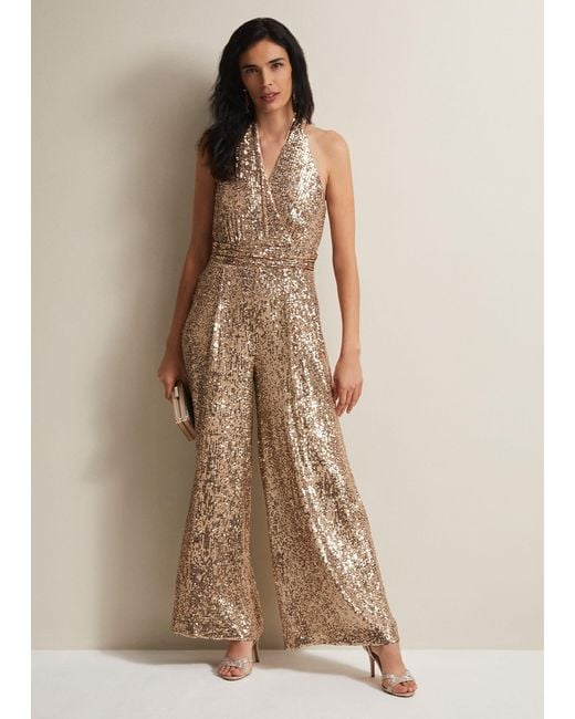 Women's Natural Clarabella Sequin Halterneck Jumpsuit
