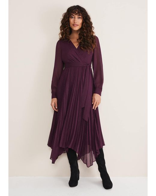 Women's Purple Dani Pleated Belted Midi Dress