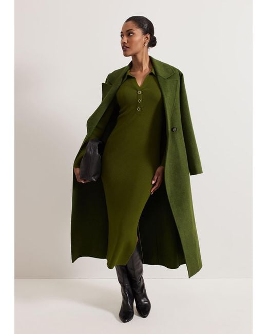 Darcy Double Faced Wool Coat. Colour: green