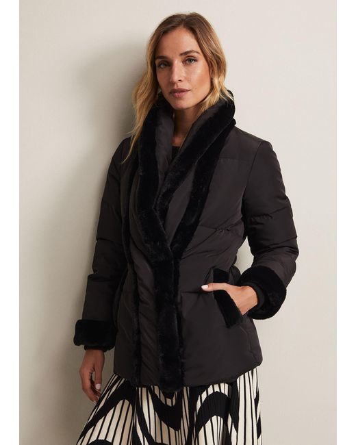 Women's Black Nelle Faux Fur Short Puffer Coat