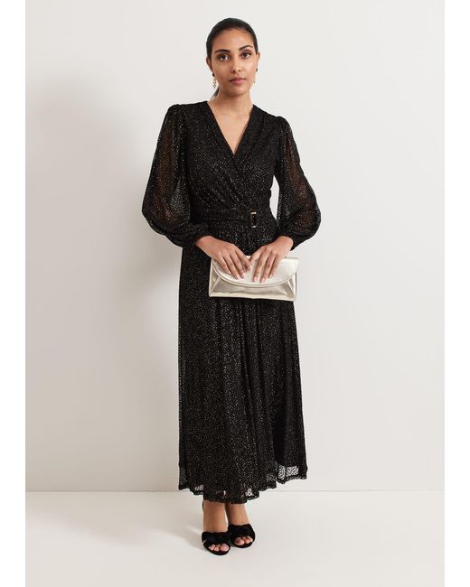 Women's Black Petite Emre Shimmer Burnout Midi Dress