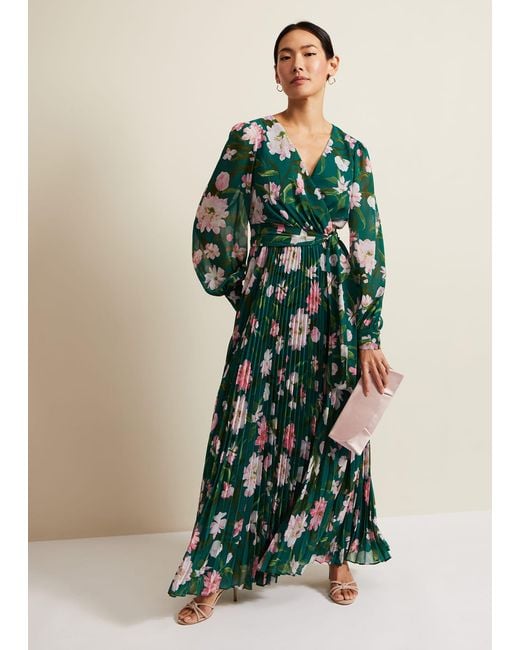 Women's Green Petite Rosa Floral Pleat Maxi Dress
