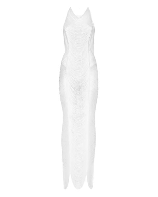 Women's White Jupe Mi-Longue À Franges