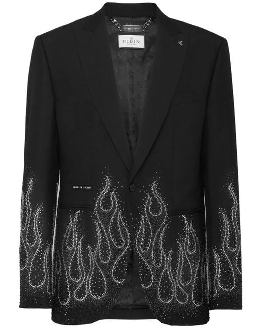 Men's Black Rhinestone-Flame Embellished Blazer