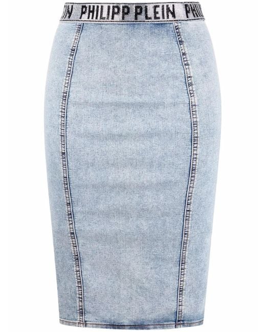 Frost blue stretch cotton blend logo waistband rhinestone embellishment pencil design rear zip fastening Size: 26. Gender: Female. Material:Polyester/Cotton/Spandex/Elastane. Colour: blue