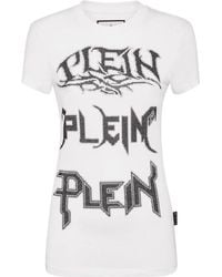 Philipp Plein Women's White Skull Stud Embellished Logo T-Shirt
