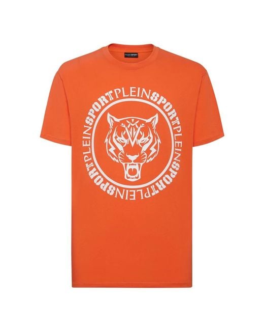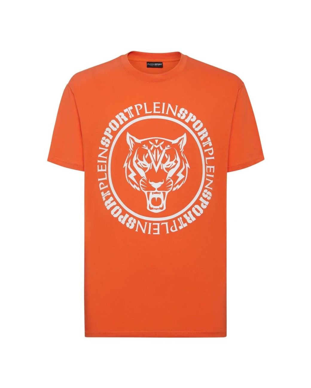 Plein Sport’s T-shirt Round Neck Carbon Tiger is a cotton jersey tee designed for comfort during training and jogging, featuring a bold front logo and a rib-knit round neckline. Key attributes: Orange | Cotton | Flexible cotton jersey for comfort | Two-needle stitching hems | Round neck | Rib knit neckline | Logo print on front | Composition & care: 100% cotton | Follow care instructions on the label.
