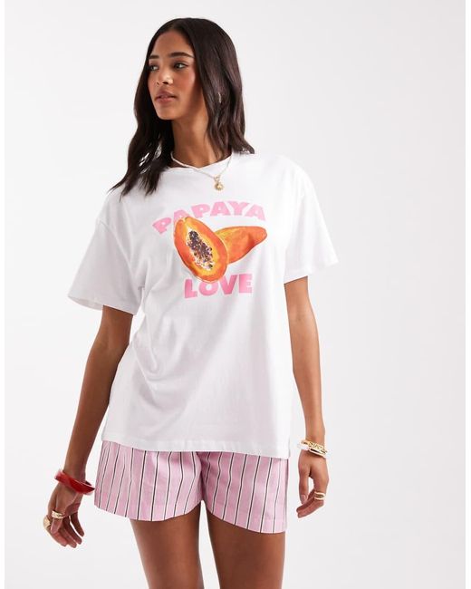 Women's White Oversized T-Shirt With Papaya Love Graphic