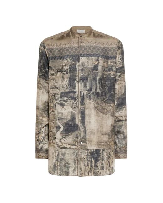 - Aloe Band Collar Tapestry Print Longsleeve Shirt