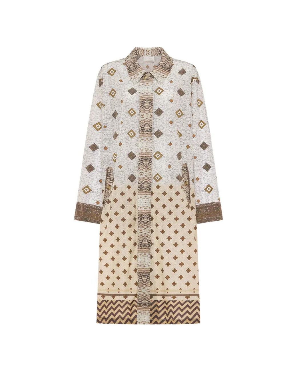 Brown geometric print longline style side pockets button fastening Size: S. Gender: Unisex. Material:Polyamide. Colour: white